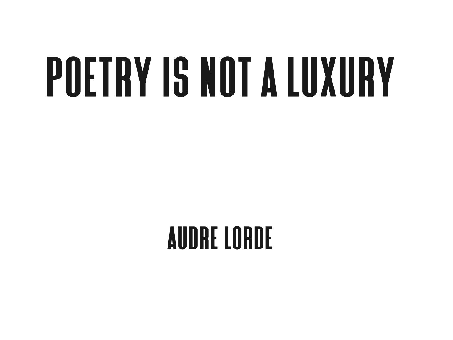 ‘For within structures by profit, by linear power, by institutional dehumanization, our feelings were not meant to survive.’ And if poetry has become merely a luxury, ‘we give up the future of our worlds.’